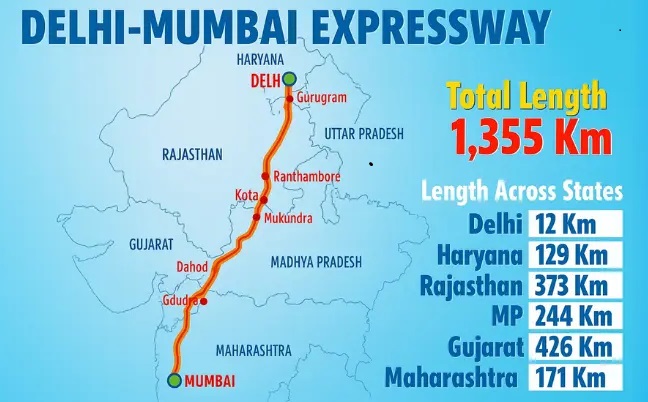 The expressway passes through Haryana, Rajasthan, Madhya Pradesh, Gujarat, and Maharashtra, connecting major economic zones and industrial hubs.